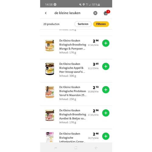 Je hebt mango/pompoen en aardbei/rode bieten beleg van 'De Kleine Keuken' Is Mees (7 maanden) heel blij mee!