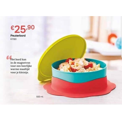 Wij hebben het plak bordje van Tupperware super handig! Kan je overal meenemen mits er een dekseltje bij is mag ook in de microgolf en afwasmachine