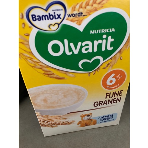 Wij geven ‘s avonds een papfles. Ene dag rijstebloem en andere dag fijne granen zonder smaakje. Zodra de rijstebloem op is gaan we over op alleen fijne granen.