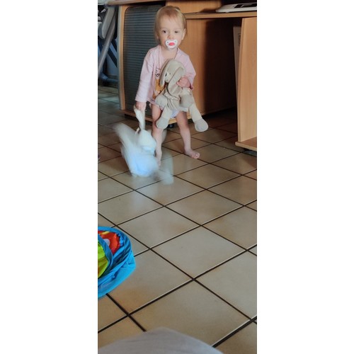 Deze knuffel is haar grote steun en toeverlaat! Wat een troost vindt ze bij hem. Tijdens het spelen ligt hij gewoon op de grond, maar wordt er regelmatig naar toe gekropen om hem even een knuffel te geven. Zo schattig ❤