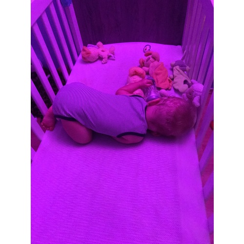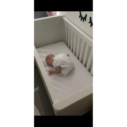 Ons zoontje ligt ook op de buik met knieeen eronder. Ik zie het als training😅 maar draai hem ook wel eens op z'n zij. Als hij dwars in bed ligt leg ik hem weer in de lengte in bed. Soms even speentje er weer in