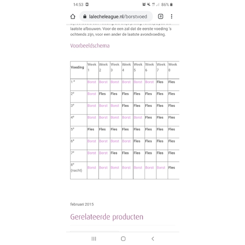 Ik ga nu afbouwen met borstvoeding en meer flesjes geven en ook dat gaat goed.
