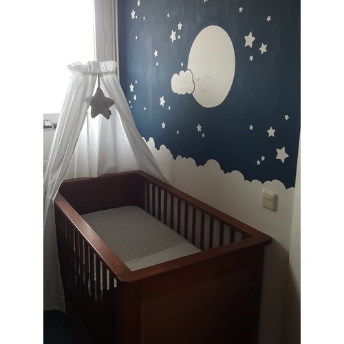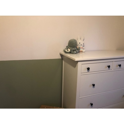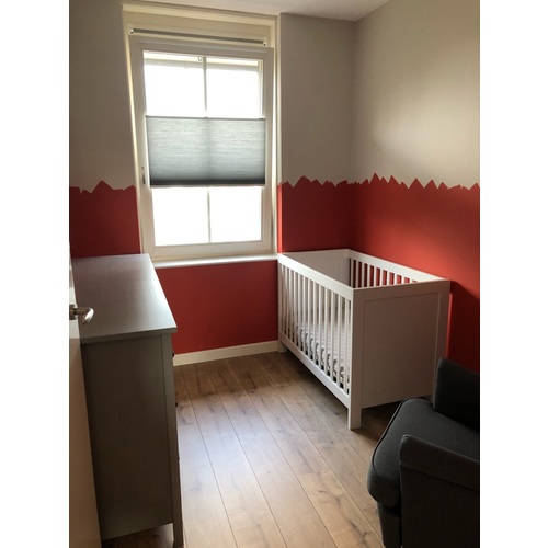 Hier 1.20m hoog. Kamertje moet nog ingericht worden. Wij wilden dat het boven de commode uit zou komen en ons plafond is hoog namelijk 2.70m