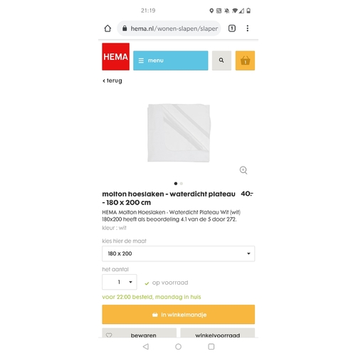 Ik heb de waterdichte molton hoeslaken bij de hema besteld. Wij hebben ook 180x200. Ligt er ook al een tijdje onder.