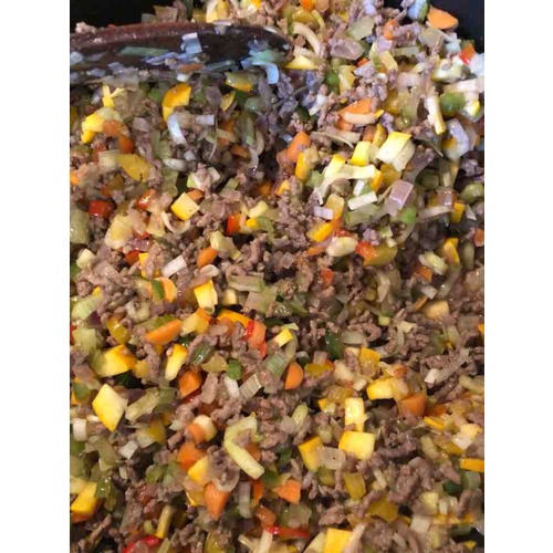 Vorige week voor het eerst een potje met pasta laten eten. Vond ze echt heerlijk, alleen had ik over het hoofd gezien dat er ei in zat, met als gevolg een hele zieke baby (ei allergie). Dus vandaag zelf gemaakt, eigenlijk net zoals ik het normaal zou maken maar alles goed klein gesneden (man wat een werk 🙈). Zit in: gehakt, rode ui, bleekselderij, paprika, courgette, prei, provinciale kruiden, peper, balsamico azijn en natuurlijk tomatensaus.