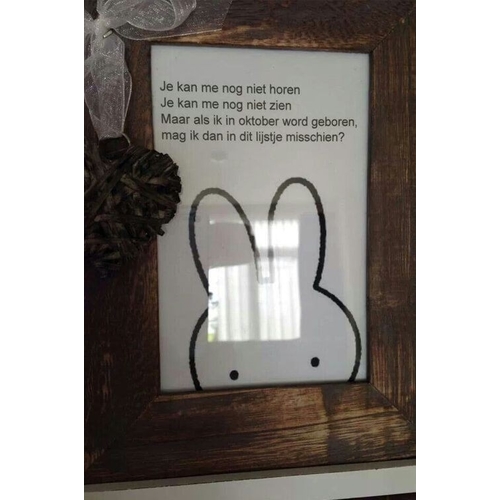 Wij maken een foto collage in een lijstje van A4 grote. Ik heb nog een zoontje uit me vorige relatie en heb hem zelf gefotografeerd van de week dat hij grote broer gaat worden, Alleen weet hij het zelf nog niet (ken gelukkig nog niet lezen 😅) anders weet de hele wereld het al direct. We hebben volgende week vrijdag de echo, helaas zonder me vriend. Die foto van me zoontje, samen met de echo foto en een foto van ons 3e met echo. En die 3 foto's in het lijstje doen en dan geven