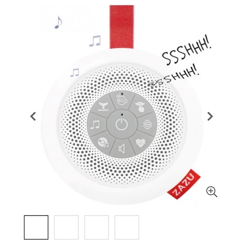 https://www.bol.com/nl/p/zazu-pam-slaaptrainer-met-bluetooth-speaker-nachtlamp-functie-wit-grijs/9200000072792555/?country=BE We hebben deze. Heeft een white noise functie, slaapliedjes, nachtlampjz, bluetooth. Het geluid stopt na 20 minuten, maar je kan een audiosensor aanzetten die ervoor zorgt dat er white noise of liedjes starten zodra de baby huilt! Oplaadbaar via gsmkabeltje en klein zodat hij meekan op verplaatsing