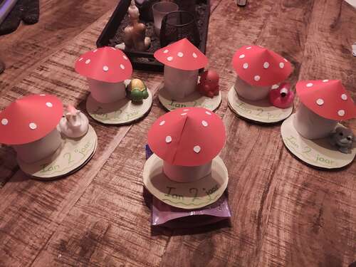 Ik hou zelf niet van (plastic)speelgoedjes in traktatie. Hier willen we ook iets doen met favoriete liedje can onze dochter of paddenstoel of helicopter en dan iets met doosje rozijntjes of een mandarijn. Ze wordt woensdag 3 dus dit weekend kijken wat het wordt en samen knutselen.