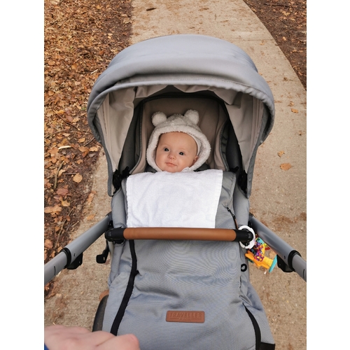 De reiswieg van de Joolz was op zich nog prima met zn 8kg maar hij is zo nieuwsgierig en wil alles zien.