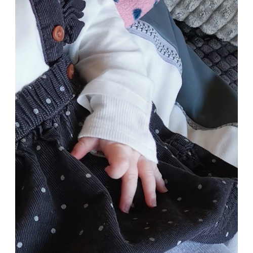Even kort onderzoek gedaan. Camptodactylie kan ook in de ringvinger voorkomen dus denk dat dat het geval is. In principe geen probleem maar het zou later verder krom kunnen trekken. Dan wordt het wel beperkend in zijn activiteiten. Op tijd naar een handtherapeut laten verwijzen om te kijken of ze ‘m wat rechter kunnen krijgen met spalken. Nu nog wat lastig met die kleine schattige vingertjes