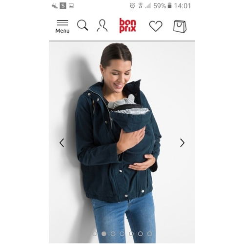 Ik heb deze van bonprix voor 50,-. Ben er helemaal weg van. Is te gebruiken als normale jas, zitten ritsen in de zijkant voor de groei van de buik, en een inrits stuk voor de baby. Vind hem nu tijdens de zwangerschap al ideaal, kan niet wachten tot de kleine er is en ik hem als draagjas kan gebruiken. 😍😍