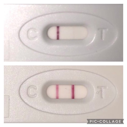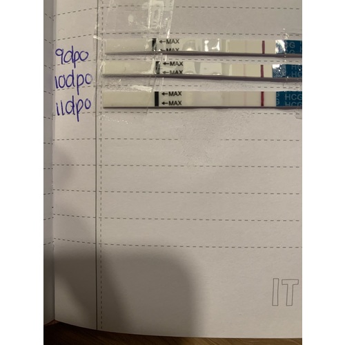 Ik had ook 9 DPO al een streepje, dat is de bovenste test. Daarna is een mooie oploop te zien. Het kan dus zeker ook gewoon goed gaan!