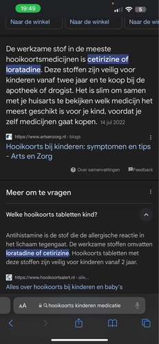Ik zal een een half pilletje cetrizine geven. Weet dat ik dit voor me zelf gebruik als ik dit heb