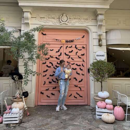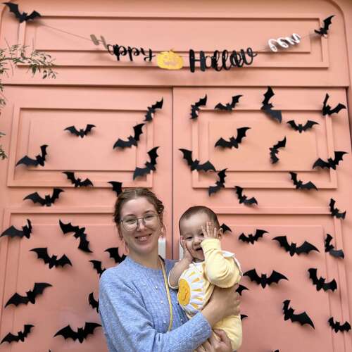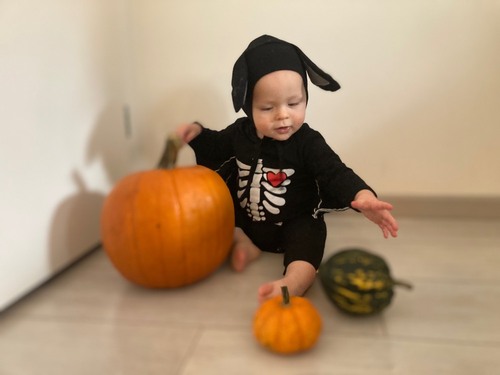 Oh, je doelde natuurlijk op Halloween decoratie ipv outfit! Ben nog niet zover. We hebben een grote eetbare pompoen voor de deur staan, die we zeker binnenkort gaan toetakelen. Daarna zijn ze vaak niet zo lang houdbaar, dus ik stel het nog even uit... Hoewel de herfstvakantie hier wel een goede timing voor is!