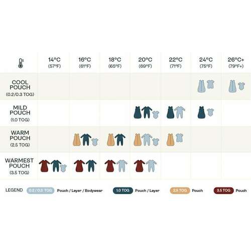 Wij hebben dezelfde slaapzak en zelfde warmte in de kamer wij ritsen de mouwen eraf en dan slapen ze in romper korte mouw en een boxpakje of feetje pyjama.