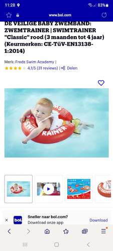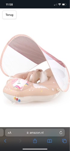 Die hebben we ook, maar die is helemaal niks, je moet de baby de hele tijd vast houden want het drijft niet alleen. We hebben die op onze proef vakantie gebruikt omdat de zwemband niet fijn was maar door het gewicht van het kind blijft het naar voren vallen. Het is niet zoals op de foto.