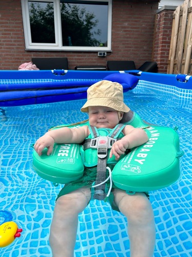 Wij hebben een drijfmaatje (tweedehands gekocht). Meerdere keren mee naar het zwembad geweest. Werkt fantastisch! Heel zn lichaam zit lekker in het water en hij heeft volledige bewegingsvrijheid 😁