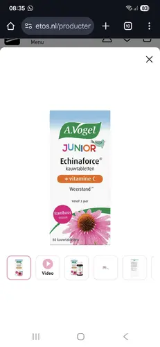 Hier ook bekent met echinaforce, werkt echt goed voor de weerstand. Vooral nu het weer herfst/winter is een extra steuntje met al die virussen. Slik zelf ook de gewone variant zodra het weer herfstig weer is..