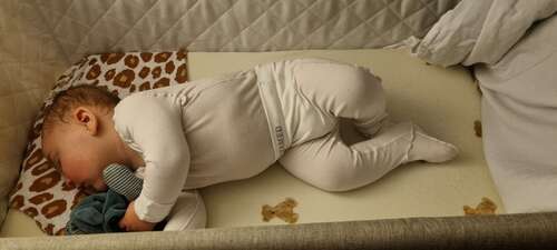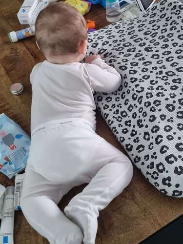 Hier slaapt ons kindje niet in een slaapzak, maar heeft een speciaal pakje aan, heel dun.