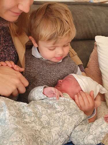 Hier een goede eerste kennismaking gehad 🥰. Onze dochter (bijna 2) is erg onder de indruk. Ze aait de baby, geeft kusjes en brengt cadeautjes. Maar de aandachtsspanne is kort. Ze vond het ziekenhuisbed wel eng, wou niet bij mij liggen. En het zal nog even wennen zijn dat ik minder met haar kan voorlopig.