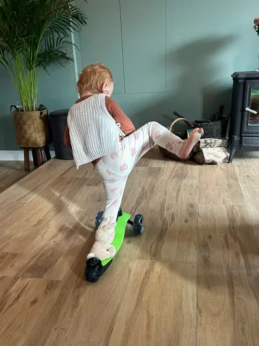 Wij hebben de scoot and ride. Deze is ook om te bouwen naar een step waar ze op kunnen zitten en voort moeten bewegen met beide benen 馃グ