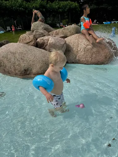 Onze dochter is echt nog te licht voor een puddlejumper, dus hier gewoon bandjes.😊
