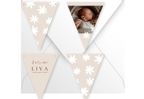 We hebben nog geen proefdruk besteld, maar vielen helemaal voor een klein ‘vlaggenlijntje’, we zagen dit toevallig bij de verloskundige in de wachtkamer hangen.