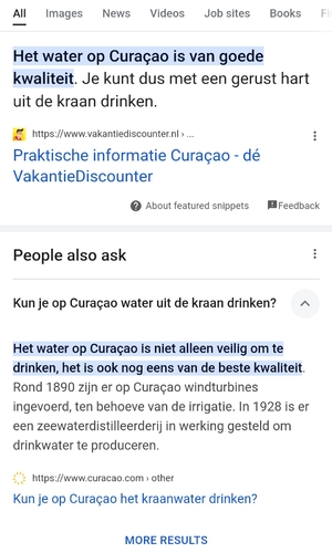 Ik ben vorig maand naar Curacao geweest en heb absoluut geen kraan water ge ...