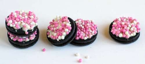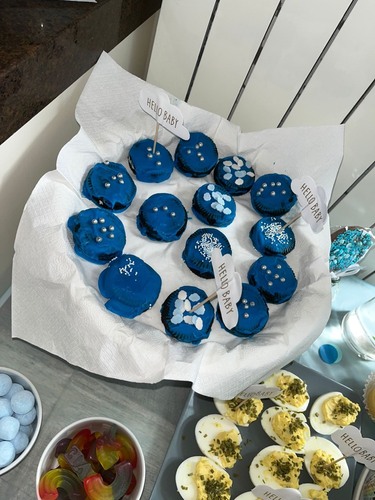 Ik wil deze maken als het lukt! Oreo’s met gesmolten blauwe chocola en strooisels! (Had mijn schoonzusje gemaakt op mijn babyshower)