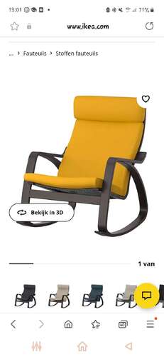 Wij hebben afgelopen weekend daar ook een schommelstoel (wel een andere uitvoering) gekocht en we konden em zelfs gelijk mee naar huis nemen. Ik zou wel navragen of deze stof ook bestand is tegen babyspuugjes oid, bij degene die wij nu gekocht hebben zit ook een spray bij waarbij zij garanderen dat de stof mooi blijft