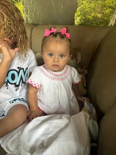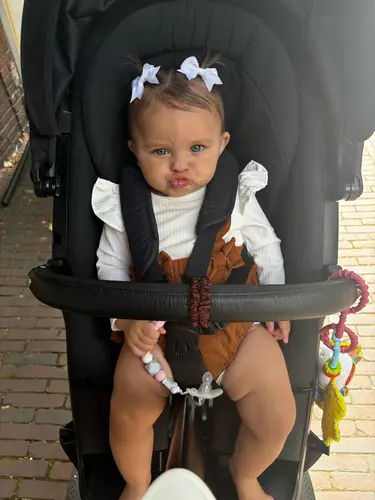Wij doen vaak een haarband bij haar in om de haren uit haar gezicht te houden, en het ziet er natuurlijk onwijs cute uit! Wanneer we bijvoorbeeld een verjaardag hebben doe ik haar haartjes met elastiekjes of speltjes, omdat ik weet we haar dan constant in de gaten hebben en dus spotten wanneer ze haar elastiekjes/speltjes uit doet en in haar mond wilt stoppen