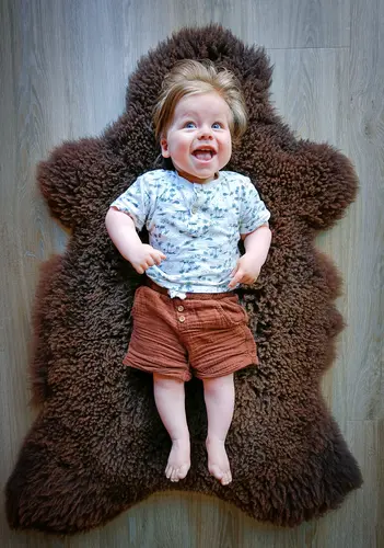 Hier ook een jongen met al een flinke bos haar. Met 6 maanden hing het al voor zn ogen en kreeg hij een matje, dus zijn we maar naar de kapper gegaan.