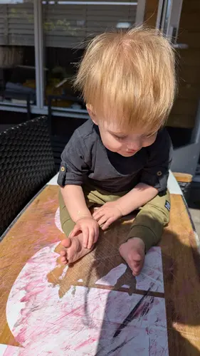 Hier eigenlijk stiekem een beetje spijt van, dus nu het met bijna 10 maanden weer wat langer is twijfel ik of we weer naar de kapper moeten of dat we er iets anders mee kunnen.
