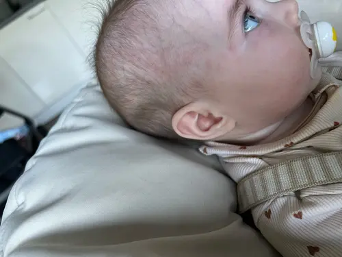 Aan de andere kant heeft ze het niet, en de huid rondom het oogje wordt ook wat rood..