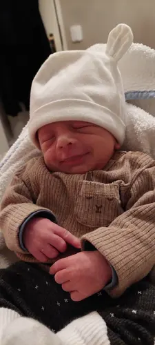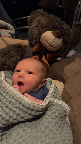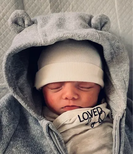 Onze lieve knappe zoon Dayn in een veel te grote beren jasje🥹🥰