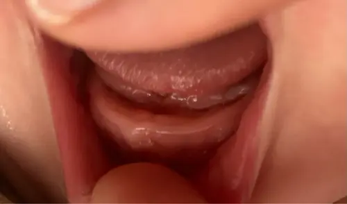 Dentinox op zn tandvlees smeren en vooral veel liefde geven. Hij moet er even doorheen helaas.