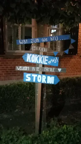 Bij ons in Twente is het gebruikelijk dat anderen een ooievaar of geboortebord komen zetten. Wij verwachten er een stuk of 4 😅 Vrienden, familie, buurt, ik ben vrijwilliger bij de brandweer en die doen dat ook altijd. Het zal in elk geval wel duidelijk zijn dat er een kindje is geboren hier haha