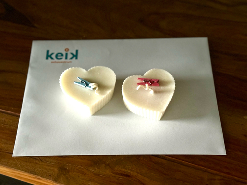 Wij wilden het ook graag klein houden! En op vakantie, dus het moest mee in de koffer kunnen. Ik heb uiteindelijk een kaars besteld, deze is wit van buiten. Je kan hem aansteken en uiteindelijk wordt hij dan dus of roze, of blauw. Ik heb ze beide gekocht en een vriendin van mij heeft uiteindelijk de goede kaars in onze koffer gestopt. Heel leuk, intiem en super spannend vonden wij. 😊