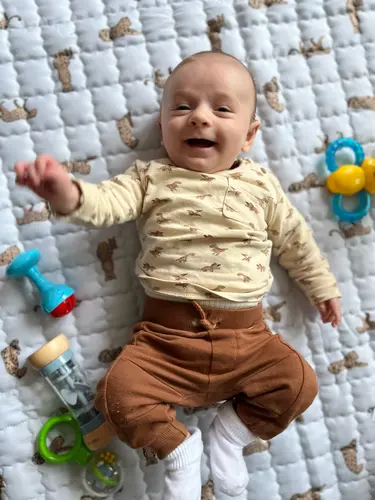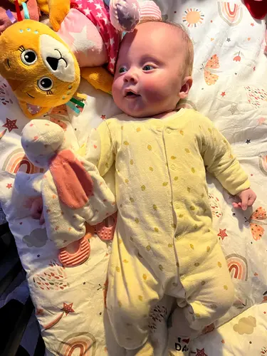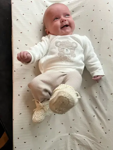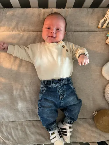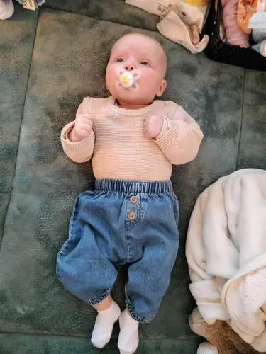 2 maandjes oud in der glitterbroek.