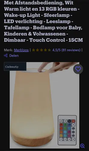 Ik heb er eentje van temu en vind hem heel erg fijn. Hij is dimbaar in lichtintensiteit en kan in iedere kleur. Maar wij gebruiken hem dus in de rode kleur op de minste intensiteit. Het lampje is draadloos maar moet ongeveer 1 x per 2 weken worden opgeladen met het bijgeleverde kabeltje.