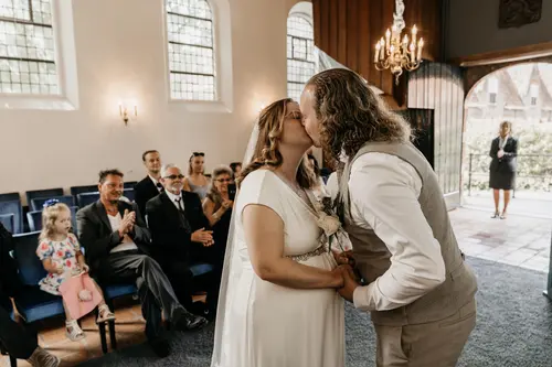 We hadden alleen de mensen die ons lief waren uitgenodigd stuk of 35 man. Lekker klein clubje gingen om 2 uur trouwen in gemeentehuis met iedereen erbij, en daarna naar een locatie. Hier sneden we samen de taart aan en proosten we. Daarna hadden we buffetje. En daarna nog gewoon wat borrelen. We hadden geen dj of band. Maar gewoon eigen muziek op een stickje en mensen deden wat verzoekjes.