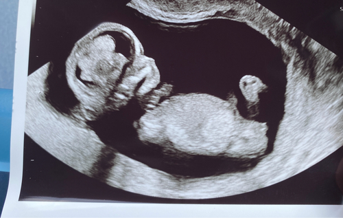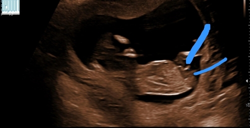 Het bovenste streepje is denk ik de navelstreng en dat onderste streepje da ...