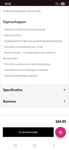 Ik heb deze toevallig net gekocht bij Prenatal. Verkoopster raadde deze aan en dit weekend nog afgeprijsd naar €80 ook! Heel blij mee!