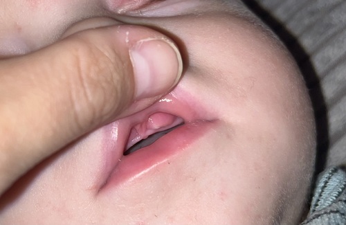 Misschien is hij ergens tegen aan gebotst, mijn zoontje guus heeft nog geen tanden vernieuwd. Maar hij zegt wel dat het pijn doet