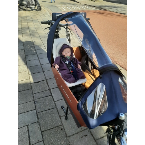 Het moet nog in de bakfiets gemonteerd worden. Dat lijkt niet heel makkelijk te gaan. Dus wanneer het gemonteerd is, zal ik laten weten hoe het bevalt
