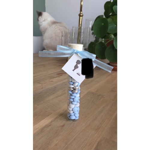 Ik had dat bij de eerste wel gedaan. Kleine kartonnen doosjes met snoepjes erin. Maar deze keer met een drukke peuter, heb ik daar geen tijd en energie voor. Bij de eerste vond ik het wel leuk om mee bezig te zijn in mijn verlof!