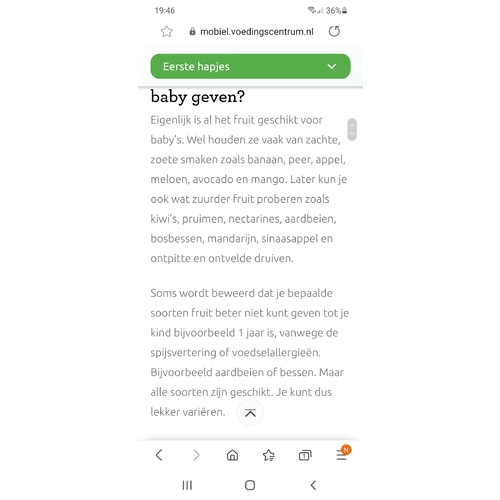 Ik ben voorstander van kleintjes maar dat je die fruitsoorten niet zou mogen geven is een beetje overdreven.(daarbij adviseren ze wel volkoren brood bij 6 maanden en daar reageren de darmen ook heftiger op dan op tarwe, vandaar dat andere deskundigen juist eerst tarwe adviseren en daarna over gaan op volkoren)