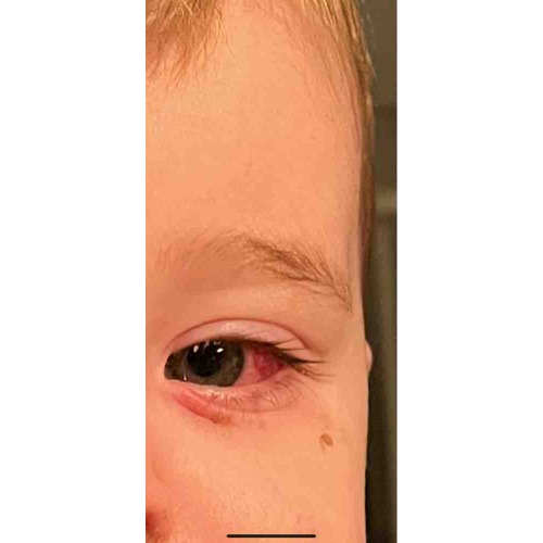 Onze zoon heeft ook een ontstoken oog. Dat rode heeft hij ook maar dan onder op het hoogwit. Komt inmiddels ook pus uit