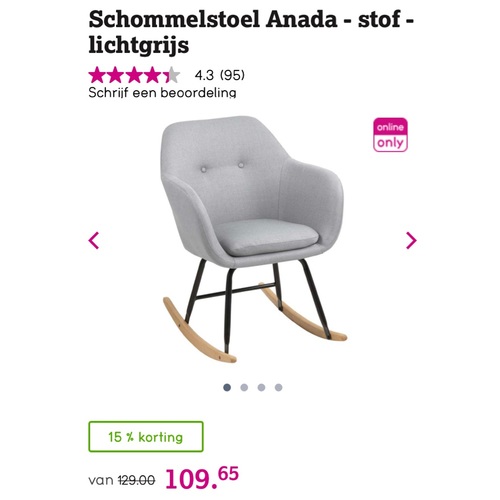 Mij lijkt het ideaal als de stoel kan schommelen, en vind het ook belangrijk dat de stoel een hoge rugleuning heeft. Dat je ook lekker ondersteuning hebt voor je hoofd. Heb er een gezien bij Westwing, met Teddy stof zo leuk. En eentje bij Furndaily, die is minder leuk maar wel de helft goedkoper (250 euro).