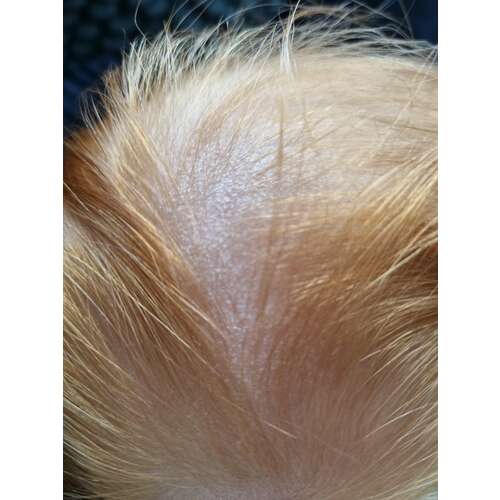 Nee geen berg. Dit ruikt ook altijd specifiek. Heeft ze een paar weken gehad na geboorte en toen was het weg. Het zit ook voornamelijk bovenop bij haar kruin. Droog van het weer, wind, wrijving oid.
